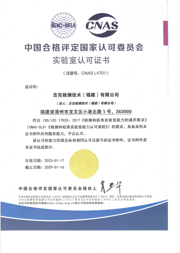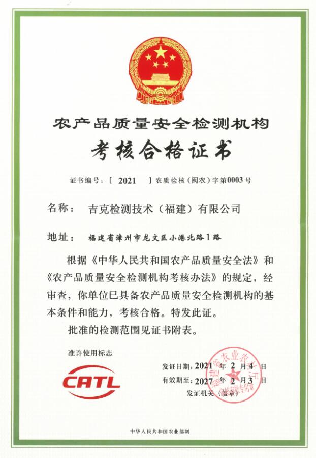 吉克檢測技術(福建)有限公司,位于福建省漳州市龍文區小港北路1號,于2019年8月注冊成立,是一家獨立的第三方檢測公司。公司已經通過檢驗檢測機構計量認證(CMA)、農產品質量安全檢測機構資質認證(CATL),獲得中國合格評定國家認可委員會(CNAS)認可。公司本著“嚴謹、規(guī)范、高效、協作”的原則和對客戶及社會高度負責的精神,充分利用本公司優(yōu)質的檢測環(huán)境、先進的檢測設備和專業的技術人員,第一時間為客戶提供科學、公正、準確的檢驗檢測報告。       公司實驗室面積1100多平方米,儀器設備兩百多臺(套),固定資產一千多萬元,在職員工31人,技術人員中的中高級職稱及同等能力人數占60%以上。我們的服...
